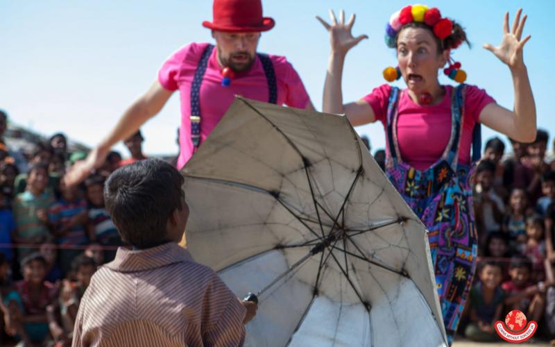 Clowns Without Borders shares the healing power of laughter and play with children impacted by war and natural disasters. The particular project they are pitching for is focused on supporting Syrian children.